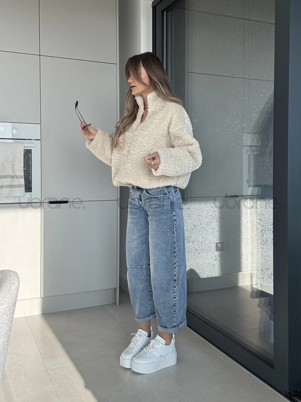 Polar oversize w rozmiarze one size to wygodna i praktyczna propozycja na chłodniejsze dni. Luźny krój zapewnia komfort noszenia oraz swobodę ruchów, a uniwersalny rozmiar dopasowuje się do różnych sylwetek. Model zakładany przez głowę, z krótkim zamkiem przy kołnierzu, pozwala na regulację i zwiększa funkcjonalność polaru. Polar wyposażony jest w dwie praktyczne kieszenie boczne, idealne na drobiazgi lub ogrzanie dłoni. Dodatkową zaletą jest możliwość zwężenia dołu polaru, co pozwala dopasować fason do indywidualnych preferencji i chroni przed chłodem. To idealny wybór na co dzień, spacery oraz aktywności na świeżym powietrzu.